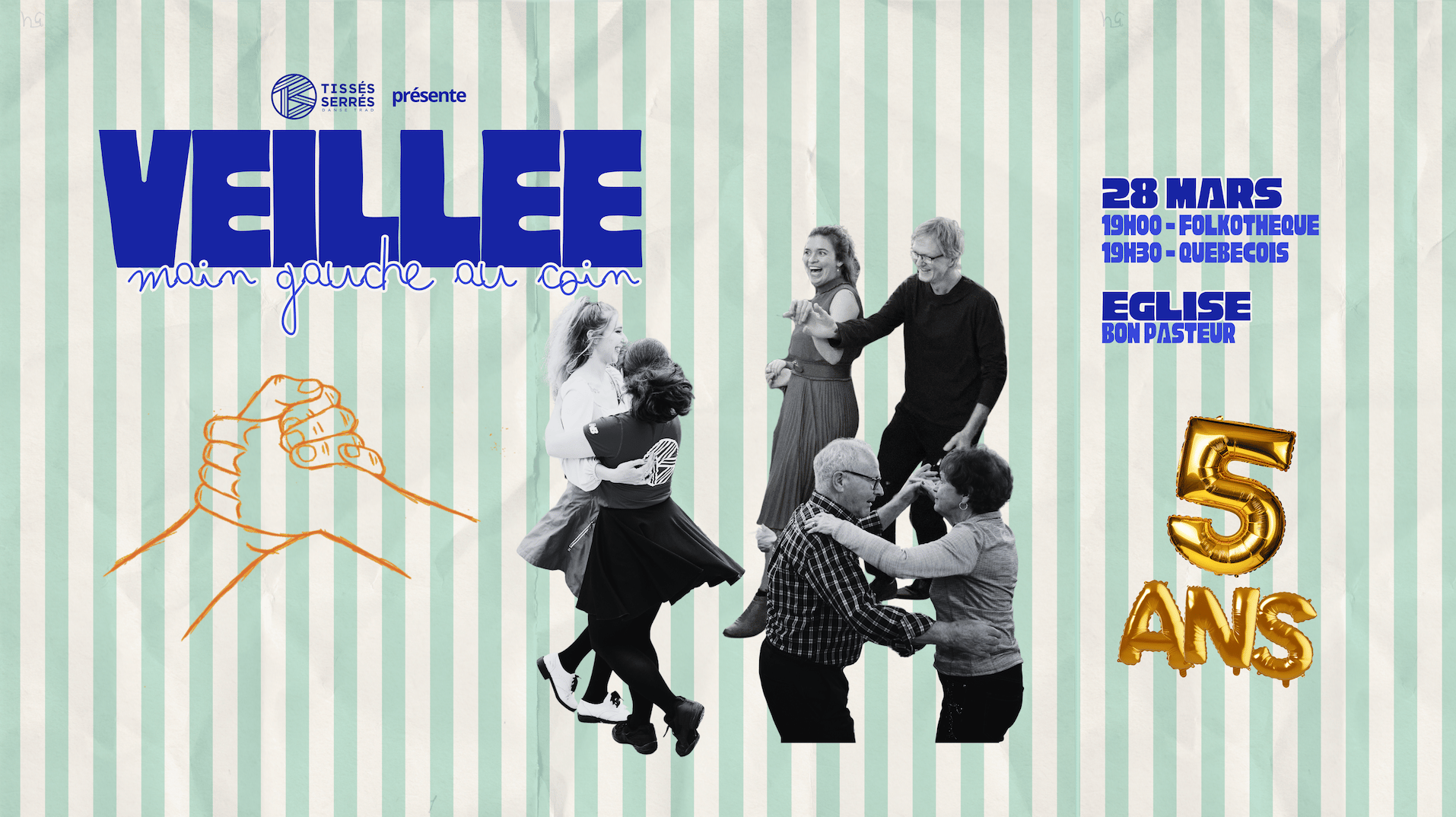 La veillée du printemps de TS est à nos portes, et nous avons une édition toute spéciale à vous offrir! Nous avons rassemblé des ancien·nes musicien·nes des Pieds Légers et des Bons Diables et une ancienne danseuse des PL pour souligner les anniversaires des groupes, ainsi que notre propre anniversaire de 5 ans. Joignez-vous à nous le samedi 28 mars pour une veillée inoubliable! 💃